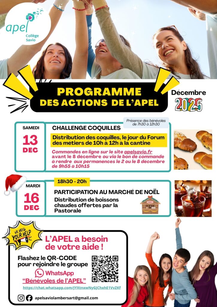 CHALLENGE COOKIES 2026 : pour tous les niveaux. Retrait des commandes le jour de la JPO, le samedi 28 mars au matin au self. Les meilleurs vendeurs et la meilleure classe de chaque niveau seront récompensés !